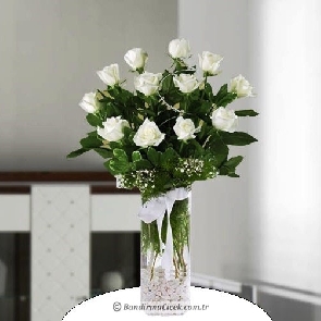 silindir cam vazoda 12 adet beyaz gül